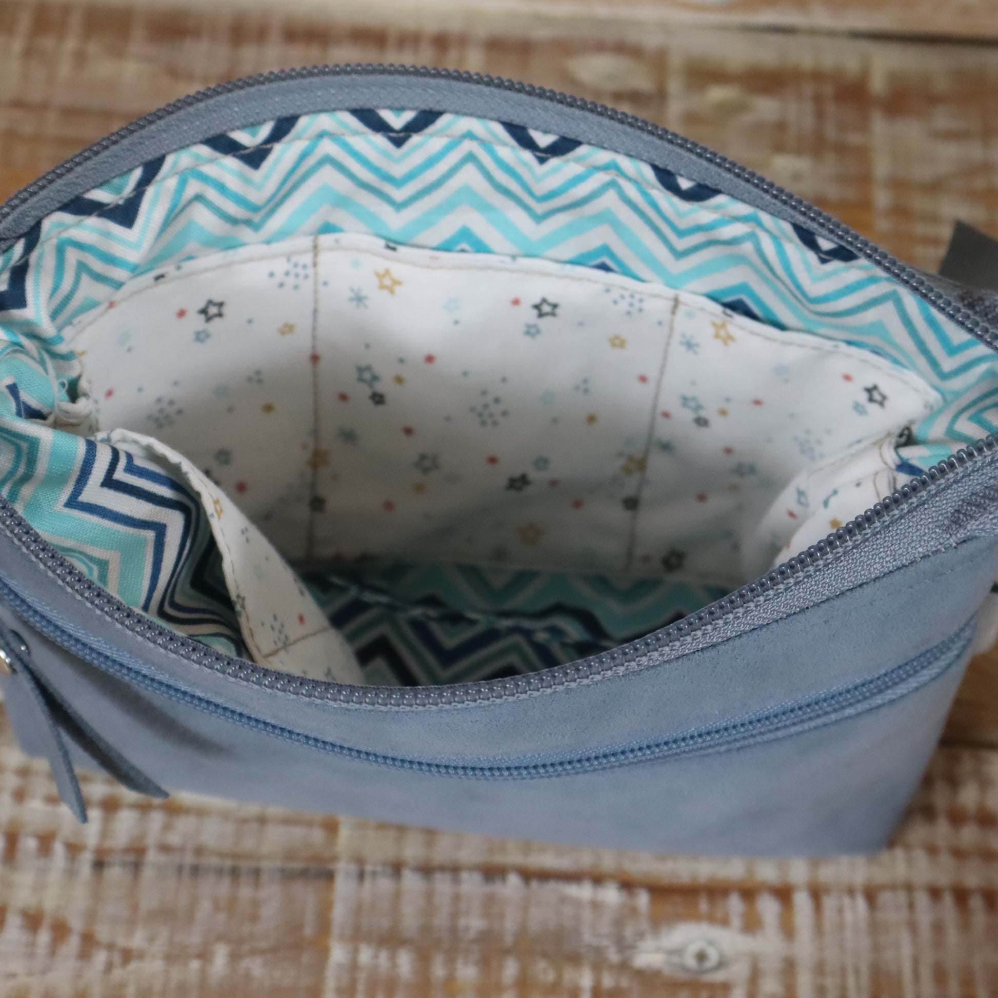 Colori: esterno carta zucchero, interno fantasia azzurro blu bianco