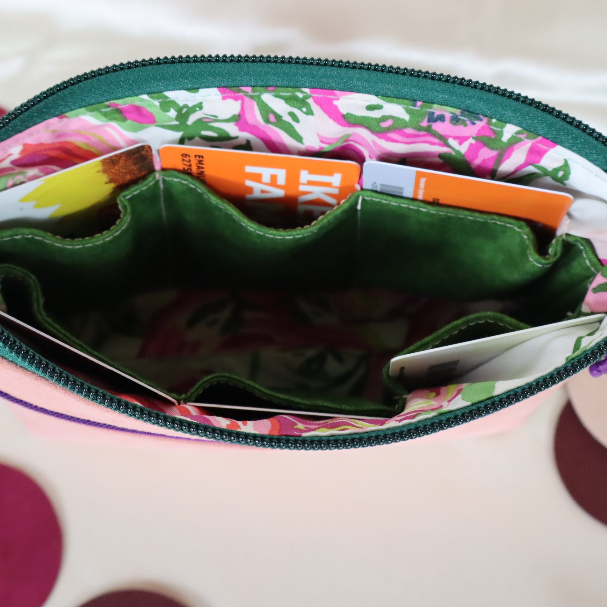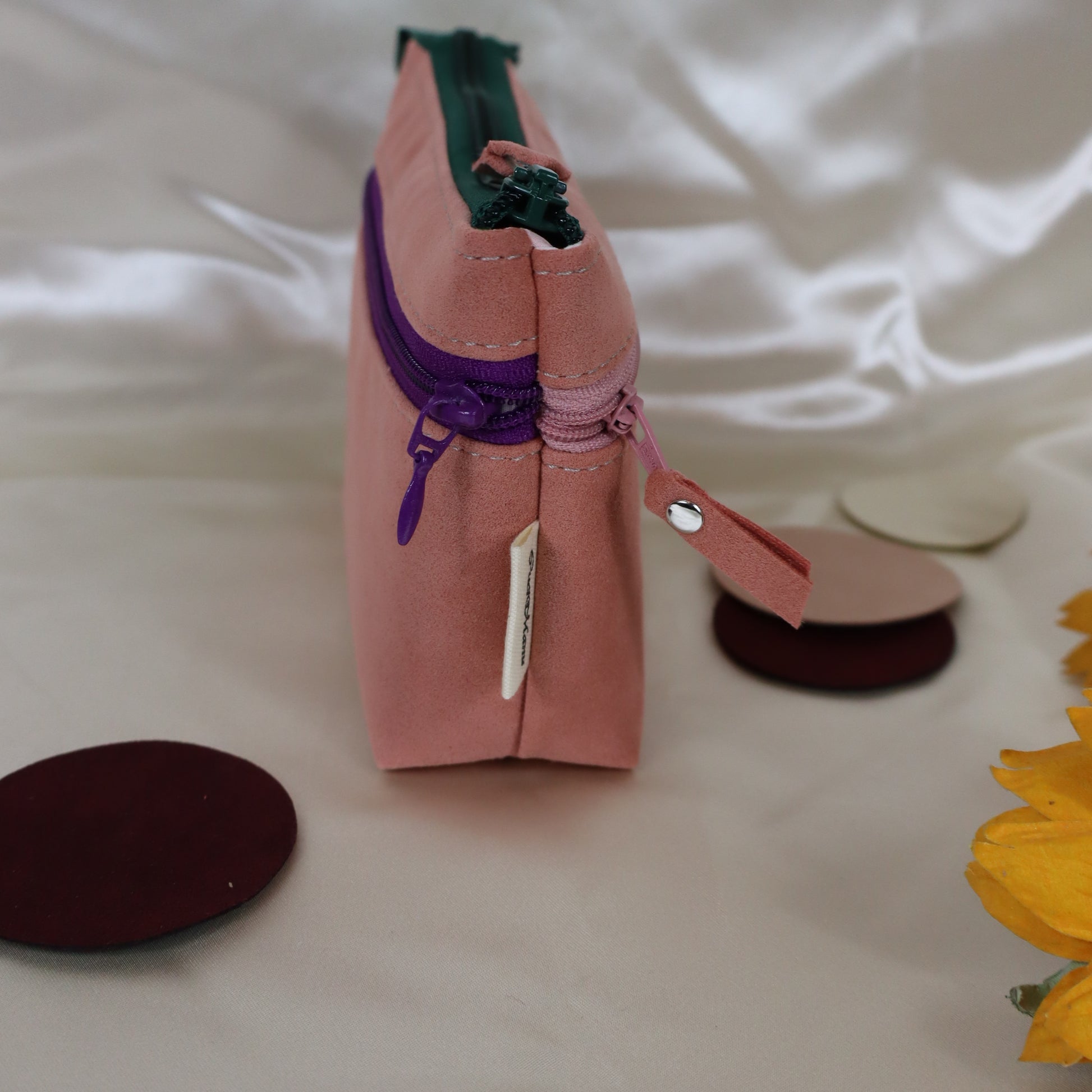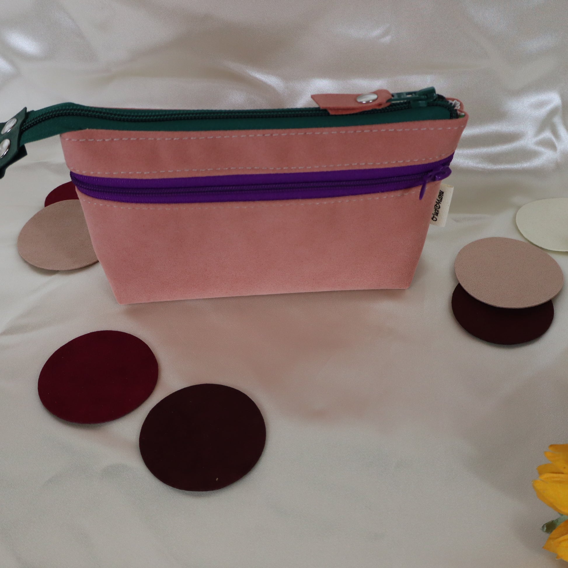 Sono un portafoglio pochette elegante e funzionale, realizzato in alcantara esterna e cotone americano interno resistente e super colorato.