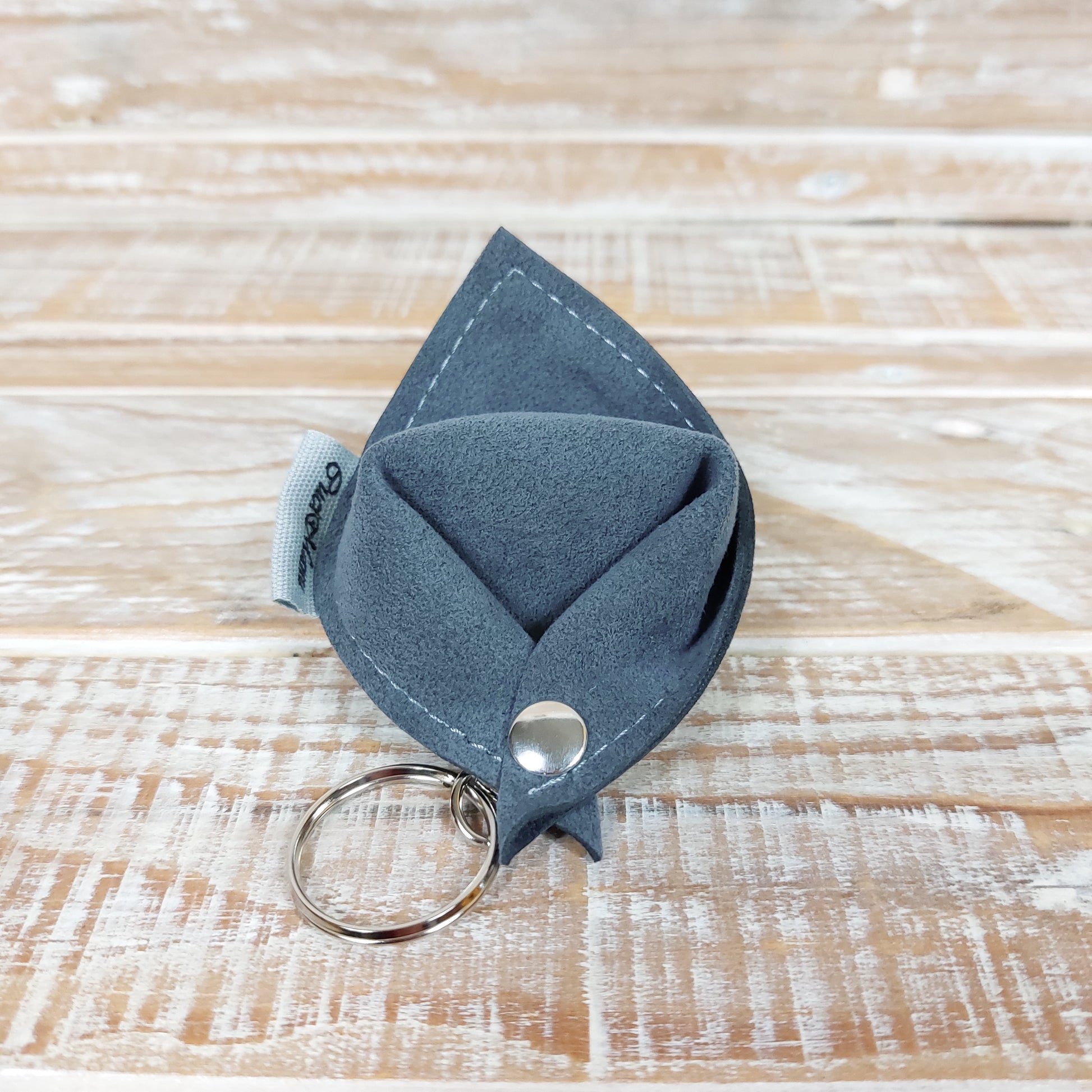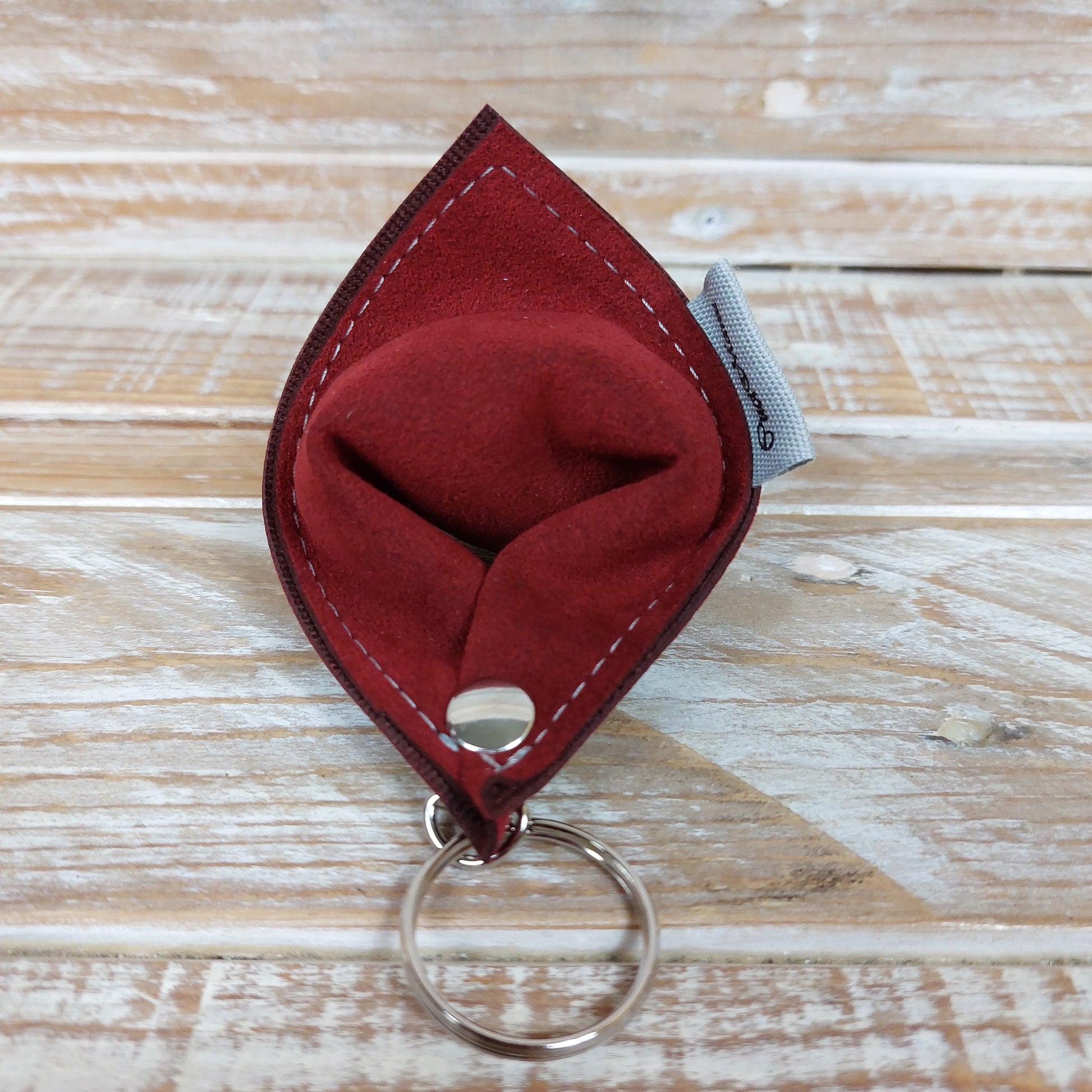 Sono un accessorio sostenibile realizzato attraverso il recupero di alcantara.